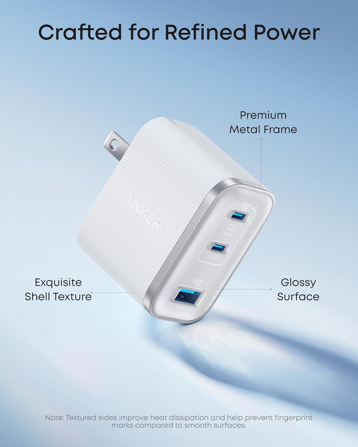 Elegance in Every Charge: A textured shell, glossy finish, and premium metal frame create a clean, modern look that blends seamlessly with your workspace or travel setup.