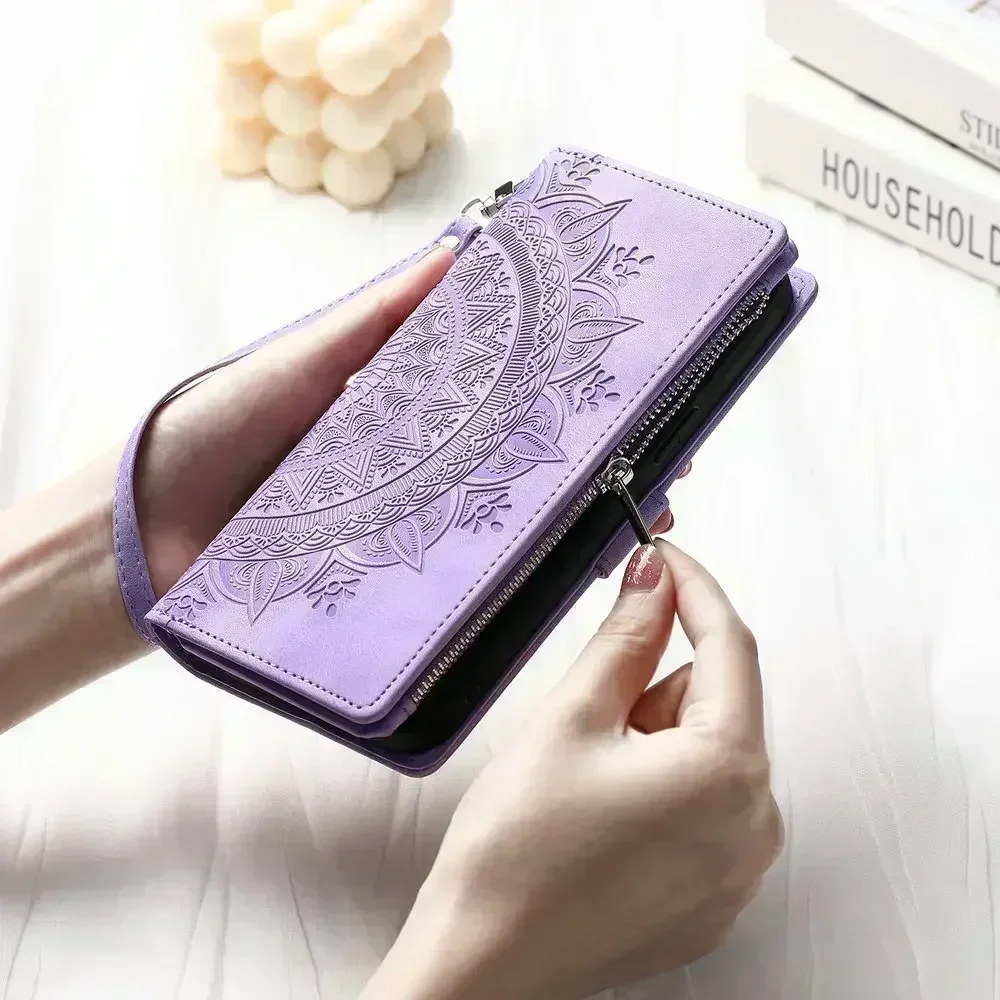 - Feature 1: Wallet / flip case with 8 card slots + 1 cash slot + 1 zipper slot