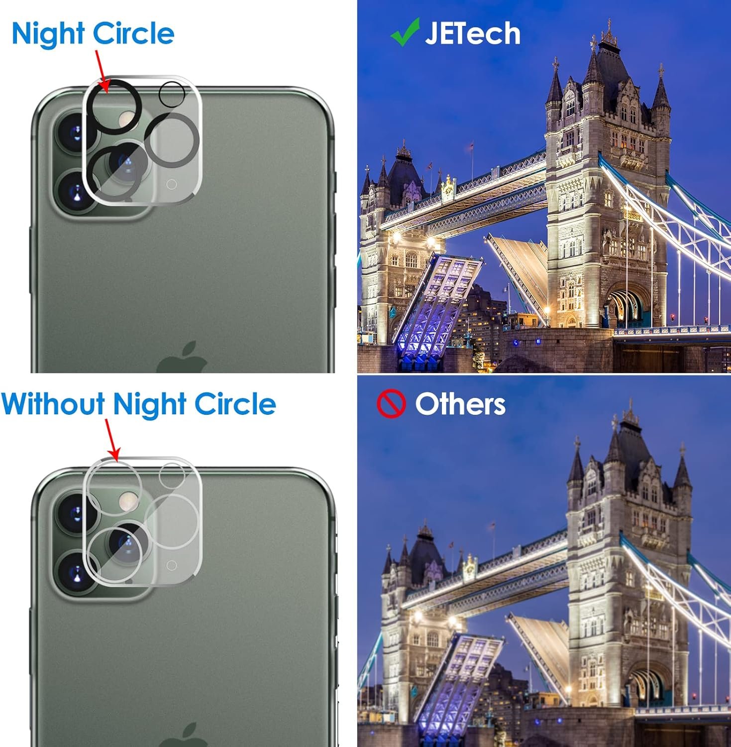 JETech Camera Lens Protector for iPhone 11 Pro Max 6.5-Inch and iPhone 11 Pro 5.8-Inch, 9H Tempered Glass, HD Clear, Anti-Scratch, Case Friendly, Does Not Affect Night Shots, 3-Pack