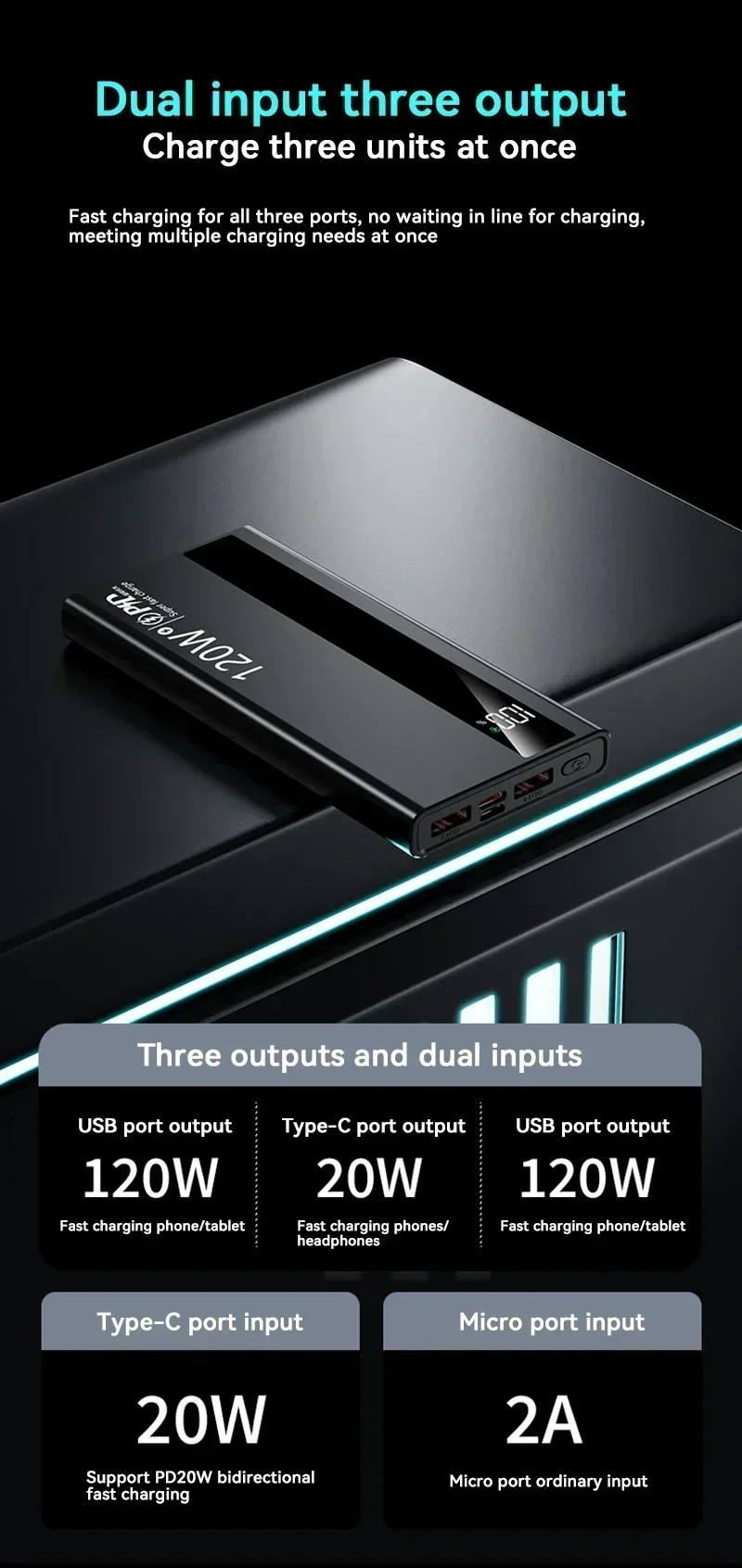 - Output Interface: Double USB,Micro USB,USB-Type C