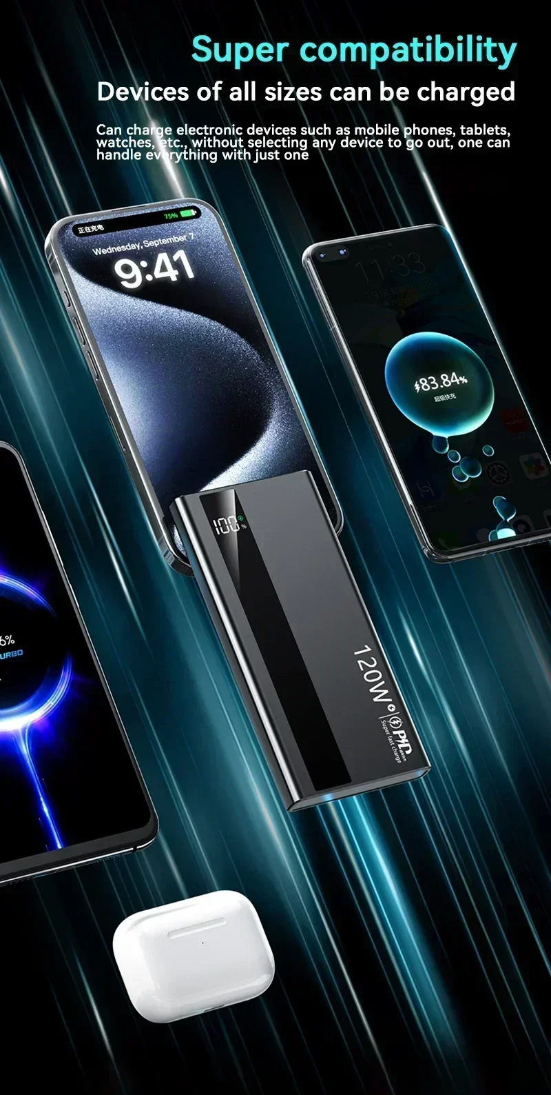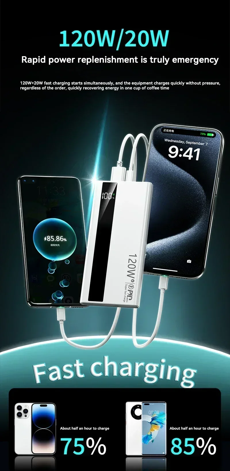 �� Bidirectional 120W fast charging, self charging is also fast