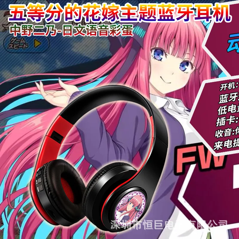 Miku Nakano Sanjiu Cosplay Bluetooth Headset 5.0 Over-ear Stereo Anime Headphones for Mobile Phone