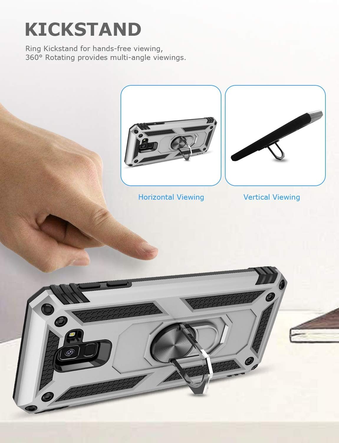 [ Stand Feature ] Unique built-in ring kickstand on back is 360 degree rotating, very convenient for easy multi-angle hands-free viewing,including horizontal viewing or vertical viewing.