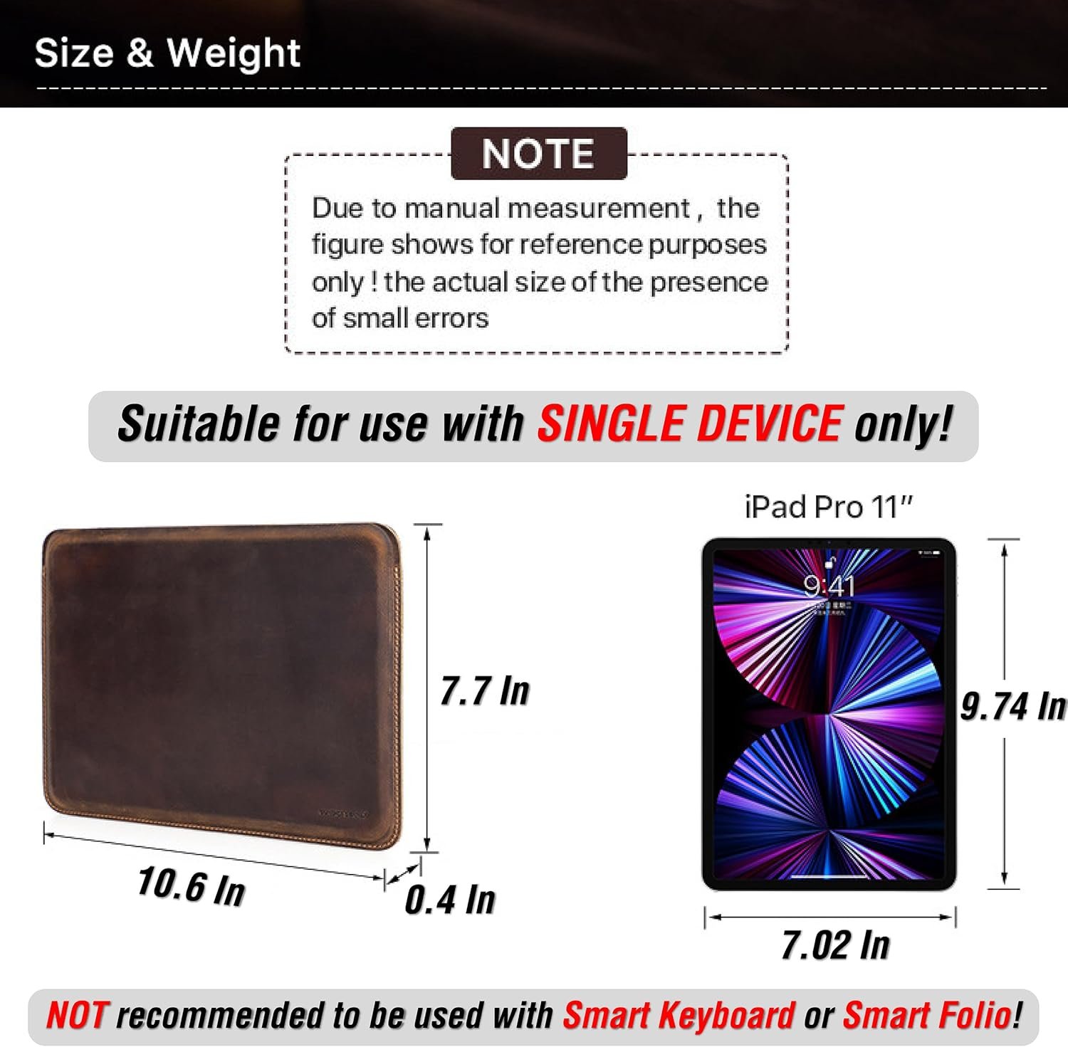 💻【Sleek Vintage Design】➯ Handcrafted with a minimalist vintage aesthetic, this product offers a pleasing tactile experience. Measuring 7.7″ x 10.6″ x 0.4″, it’s the perfect slim fit for 10.2″/10.5″/10.9″/11″ iPad Pro/Air and similar Tablet. Combining protection with sleek portability. Please be advised: Suitable for use with SINGLE DEVICE only! NOT recommended to be used with Smart Keyboard or Smart Folio!