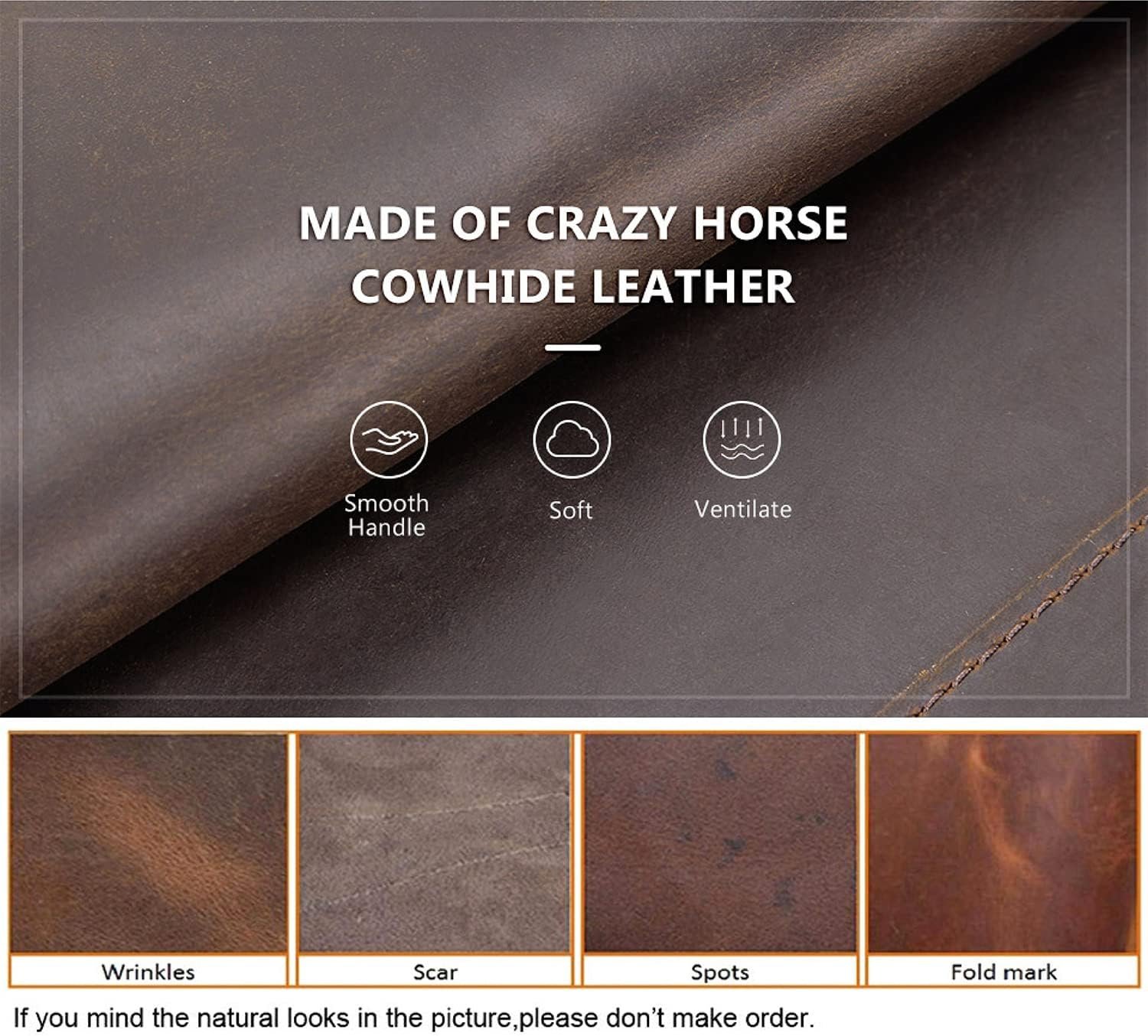 👍【Genuine Quality, Lasting Durability】➯ Our top grain leather showcases natural characteristics, setting it apart from artificial materials like split grain or PU. With simple maintenance, experience a product that’s durable and ages gracefully without cracking or peeling.